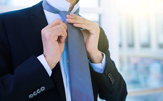 ネクタイを結び慣れておくには、普段からの練習が必要です。会社訪問や面接当日の朝にうまく結べず焦らないように、普段から練習しておきましょう。
